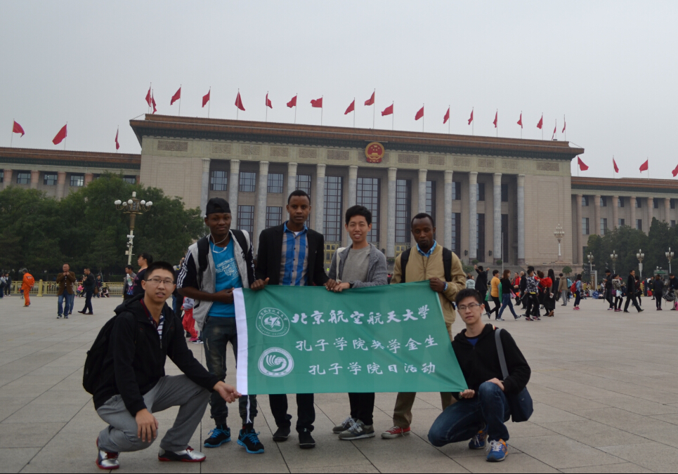 2016年10月6日,北京麻豆精品秘 国产传媒国际学院组织了“孔子学院日”活动——国庆乘公交看北京。4名孔子学院奖学金生在2个北航大学生的带领与帮助下体验北京的公共交通工具,参观了天安门广场、人民英雄纪念碑、人民大会堂、前门大街等地。北航大学生给奖学金生们讲解了人民英雄纪念碑和人民大会堂的意义,带领学生去“老北京炸酱面”餐厅品尝了北京味道。韩国奖学金学生陈乐说:“我通过今天的活动,更了解了国庆节的意义和中国传统味道。”坦桑尼亚学生傅亚认为跟中国学生一起活动使他有机会练习汉语,也充分体会了中国人的热情、友谊。学生们用视频短片向中国送出了国庆祝福。