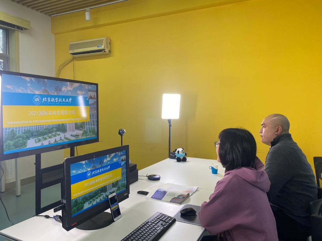 12月10日,国际学院与北航马来西亚留学生源基地合作,为北航马来西亚留学生源基地大学预科班的学生们进行了线上招生宣讲。宣讲开始前,国际学院翁敬农院长、伊小素副院长同生源基地负责人就马来西亚来华留学生招生合作及学生培养进行了交流。在学校介绍和招生信息讲解后,来自机械工程及自动化学院的乔立红教授为同学们介绍了机械工程及自动化学院的学院概况、师资力量、科研教学、专业方向及就业前景等内容。老师们对线上同学提出的关于北航学习生活、学科选择、录取标准等方面的问题一一做出了解答。