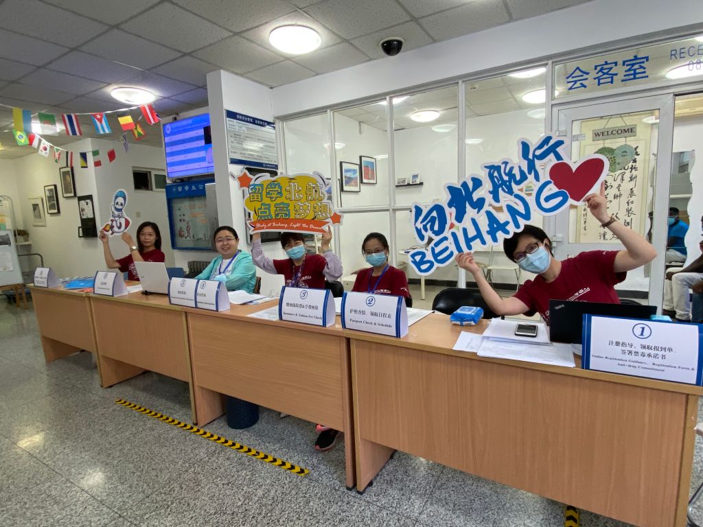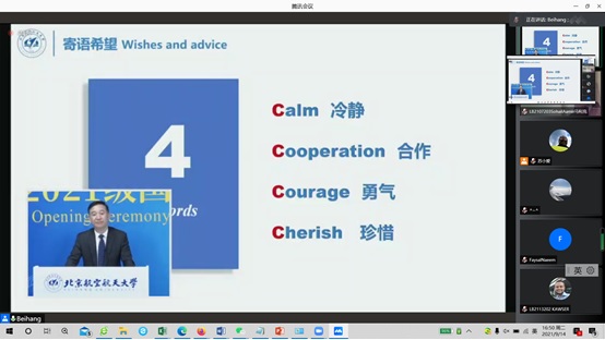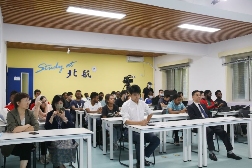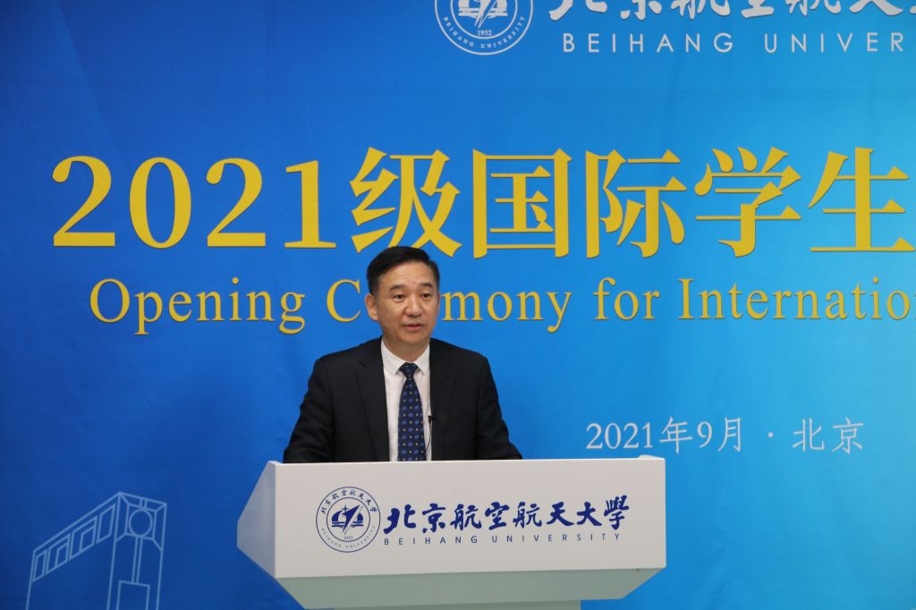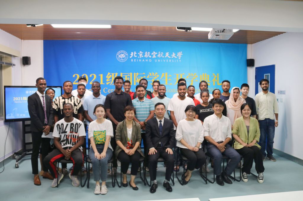 9月14日,2021级国际新生开学典礼在学院路校区国际学院举行。已入校报到和目前在境外的国际学生新生通过线上线下相结合的形式,参加开学典礼,共上新生第一课。典礼上,新生们首先通过短片了解了北航的校史、办学理念、办学成就和校园文化。